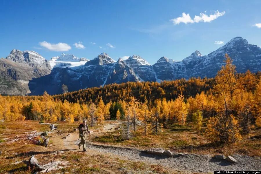秋天的枫叶国,也不仅仅是满满的红色“枫”情,落基山脉金色的秋景,也许是加拿大秋日最与众不同的迷人画面之一...给你13个理由,爱上秋日班夫。 这里有着和夏天一样的美丽湖泊 湖还是那些湖,动人的蓝色总是让人流连忘返。秋天,这些湖的色彩依旧那么迷人,而且,在周围金黄色落叶松的点缀下,展现出别样的风情。 是时候开始你的牛仔生涯了 落基山脉也算是加拿大盛产牛仔的地方之一了,提到体验牛仔的生活,自然少不了马背之旅。骑上马,穿行于高大的落叶松之间,保不齐,你就因此爱上了牛仔的生活 火车上的金色穿越 坐在火车上看落基山脉是什么样的体验?班夫娘说了那么多次,你们肯定已经了解了~而秋天,色彩这么艳丽的季节,坐火车到落基山脉将更是绝妙的体验。 让当清晨第一缕阳光打在金黄色的树梢时... 早上起早一点,登上单车到Vermillion Lake或者着名的骑行小路Banff Legacy Trail,随便找一个地方等待日出吧,你会永远记得这个清晨。 秋日的美味 艾伯塔省最着名的美食是什么?当然是牛排,其实,牛排之外,班夫的美食还有很多,在这个丰收的季节,到镇上的餐馆去找寻吧! 金色的步道... 近距离感受落基山脉迷人秋色的方法当然就是徒步啦,简单一点的可以选择Larch Valley,Johnston Canyon,Lake Agnes,如果你是大牛,做点功课,到人少的野外去吧,哪里秋日是天堂。 自驾的天堂... 秋天的班夫仍然十分适合自驾,弓谷公园大道和冰原大道都进入了“黄金模式”,开车过来看看吧,远远地看看山,看看水,看看冰川,一场惬意的假期当是如此(黄金周就走起吧?) 划船吧,用最酷的方式... 在落基山脉划船可不是你先找个公园,然后找个码头,然后和看船大爷说:“诶,我买张票划一个小时”。在班夫国家公园,只要你有船,在哪个湖都能划,不过千万穿好救生衣注意安全。(什么?我们这也是公园?不要在意这种细节) 还能泡温泉 嗯...这个活动...总说,这确实是个一年四季都适宜的活动呀,毕竟山上的景色每天都不一样,而且走了一整天,难道不应该泡点热的让全身放松一下么? 怎么能少了钓鱼 钓鱼爱好者们,秋天可是钓鱼的好时候,这个时候,Bow River就是你的好选择,不过钓鱼的时候记得买许可根据公园规定钓鱼哦! 落日的余晖 不多说,看图,看了你们就明白... 所以,下个月的黄金周,来班夫可好?