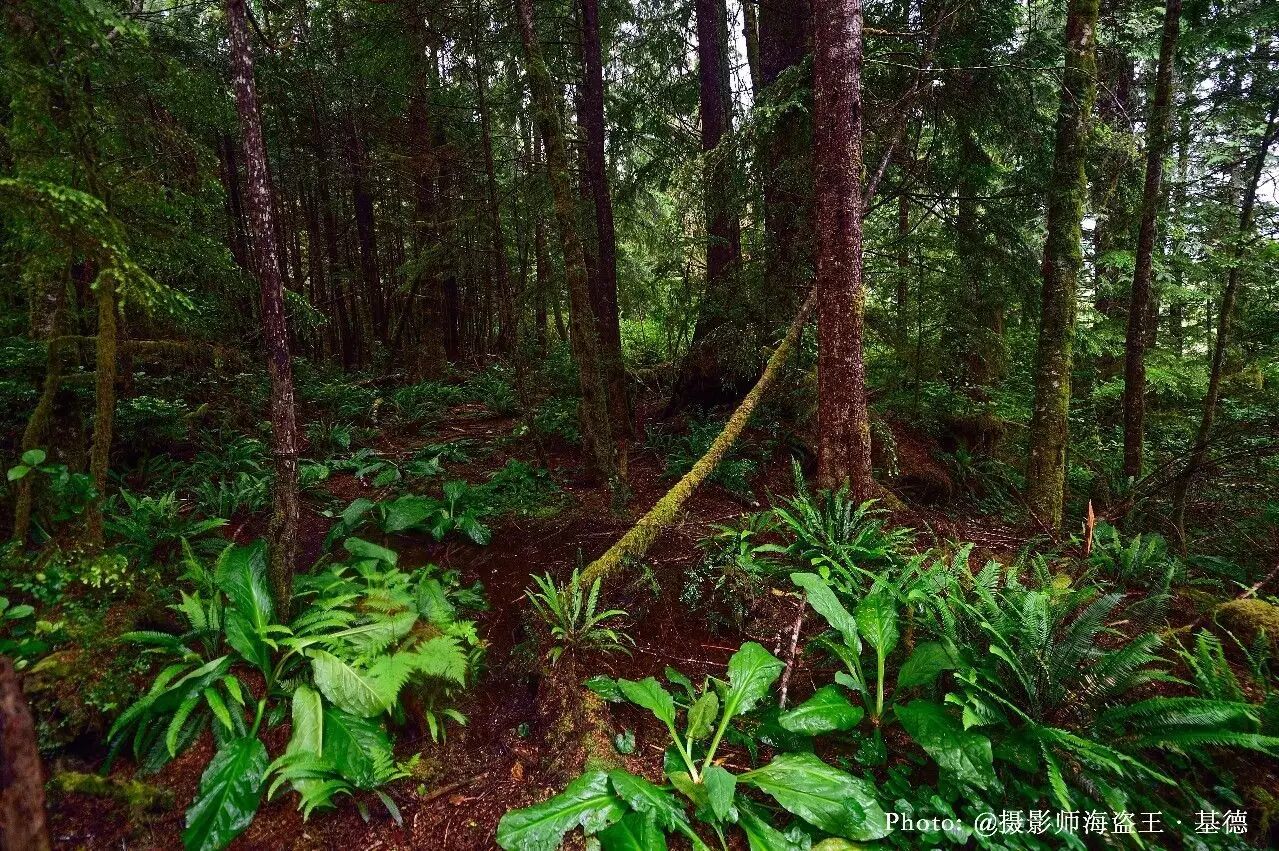 几百、上千年树龄的各种冷杉,铁杉,红杉,道格拉斯杉密布雨林间,地衣、苔藓和各种蕨类植物,各自在自己的空间尺度中生长着,相辅相成,自然交替,一派和谐,上千年来从未改变,而电影《暮光之城》的场景也正是取自于加拿大的森林里。