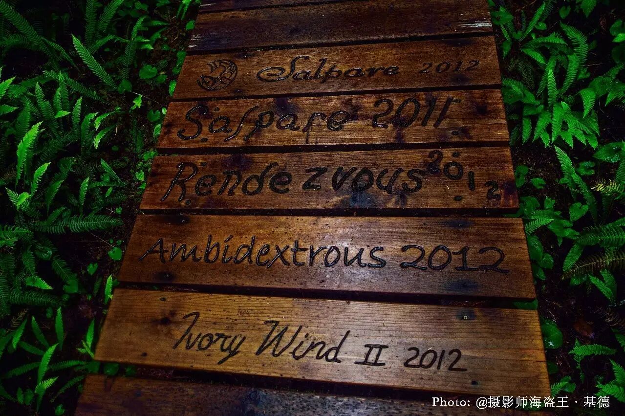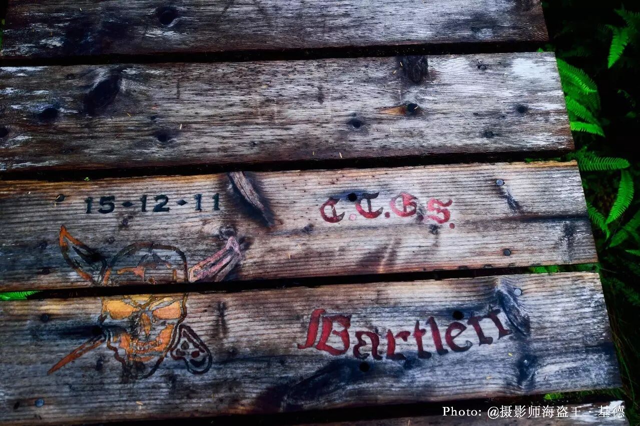 沿途栈道上的木板很有趣,每块都刻着各种文字和图案。这些都是有心人按着原有尺寸将木板做好,在家刻好字后,再到此处将原本的木板替换掉。