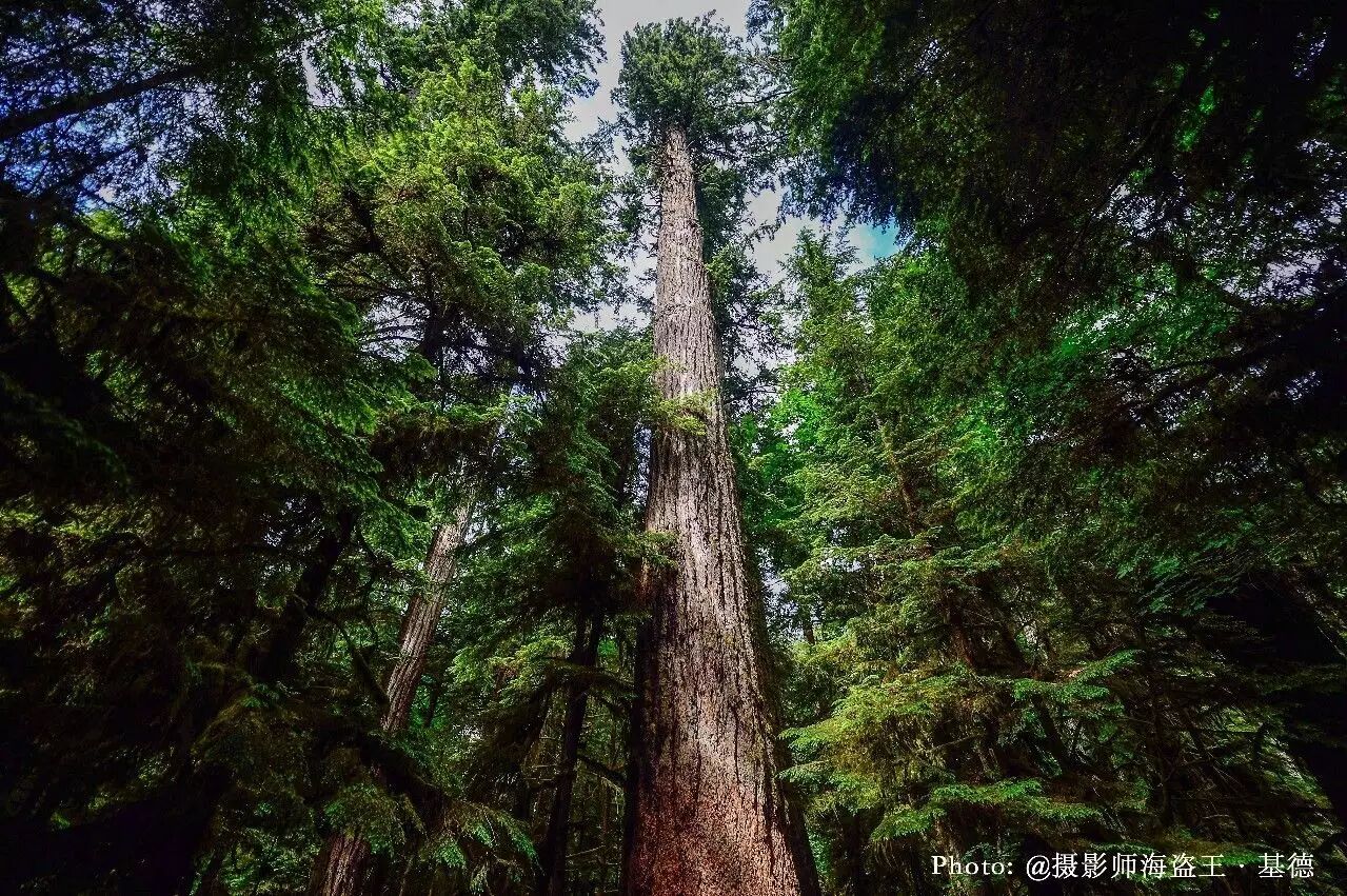 雨林里的杉树动辄高达数十米抬头仰望很有冲击感。