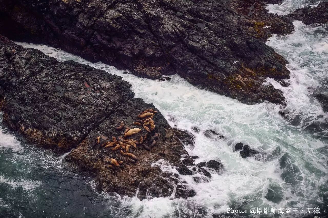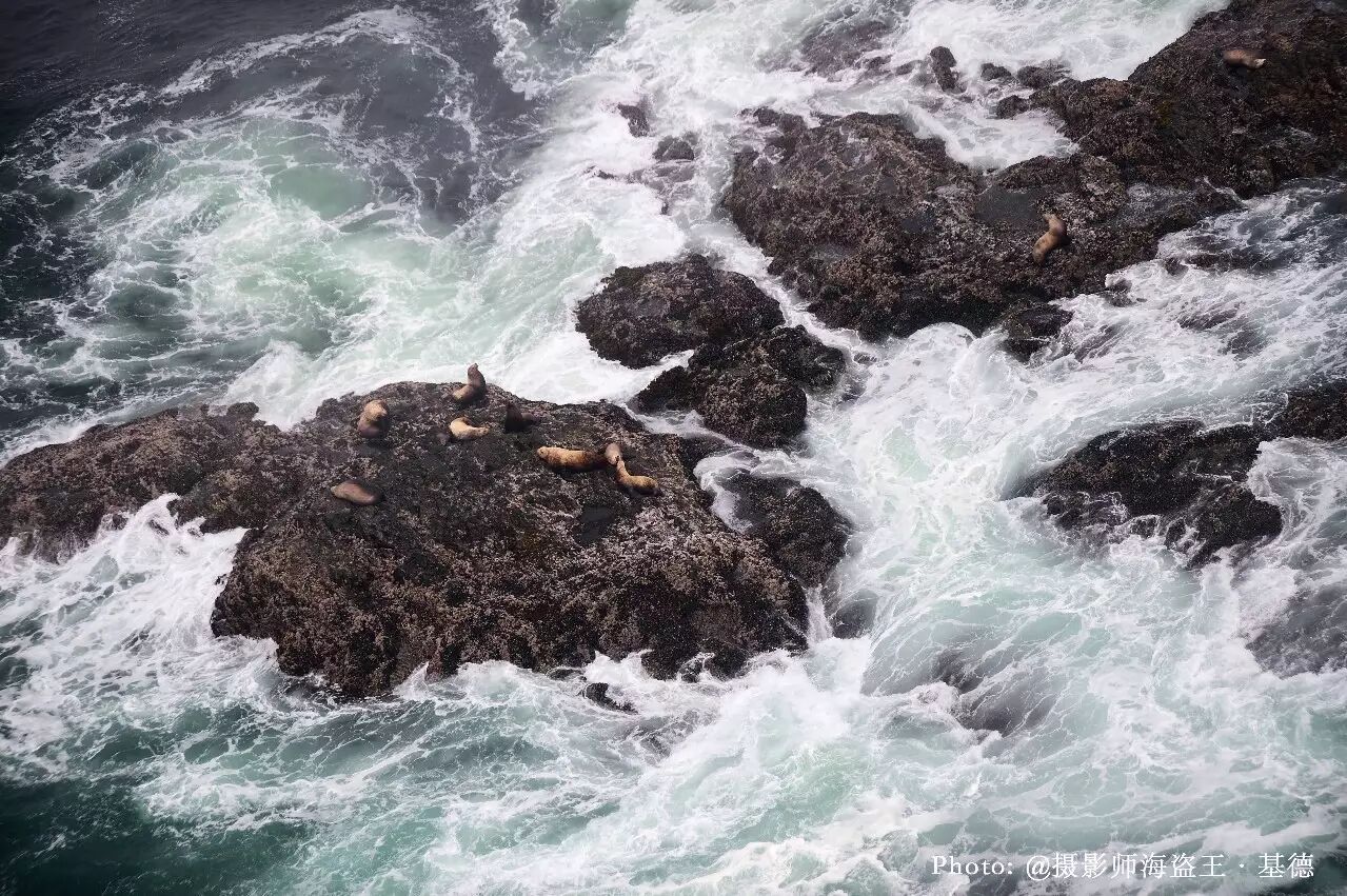 飞临某个散布在海岸线上的零星小岛,朝着机长指给我的方向看去,一大群海狮挤在岛礁上晒太阳。