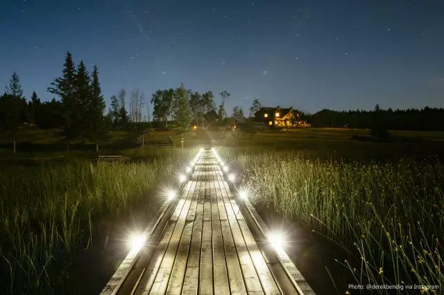 如果在户外游玩时饿了的话,烧烤架上烤制的黑安格斯牛肉汉堡(Black Angus Burgers)也会是非常好的选择。到了晚上可以围着巨大的壁炉开场派对,派对结束后农场也为大家提供了私人的浴室供大家洗漱。