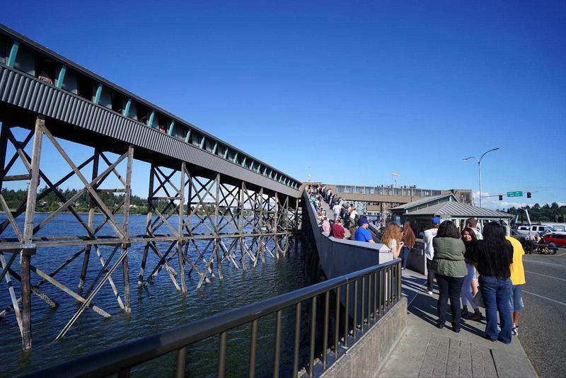 从渔人码头导航开到金门大桥,一路沿海,景色非常漂亮,中途会有许多可以park的停车场,我们在最靠近金门大桥的停车场找到了一个停车位,重要的是这里is for free!旧金山的天气竟然比西雅图要冷上10度左右,海边更甚,穿着裙子的我这时候已经不只是迎风凌乱而是冻得哆嗦。旧金山多雾,很难看到特别清晰的金门大桥,不过国际橙色的大桥在海与天之间还是很明显的,实际给人的冲击力也着实很大。想着无数电影中出现过(过毁掉过)的大桥就在眼前,感觉太棒了!车位旁边有个小山可以爬上去看看,无论是漫山花草,还是参天大树都是那么令人惊叹!