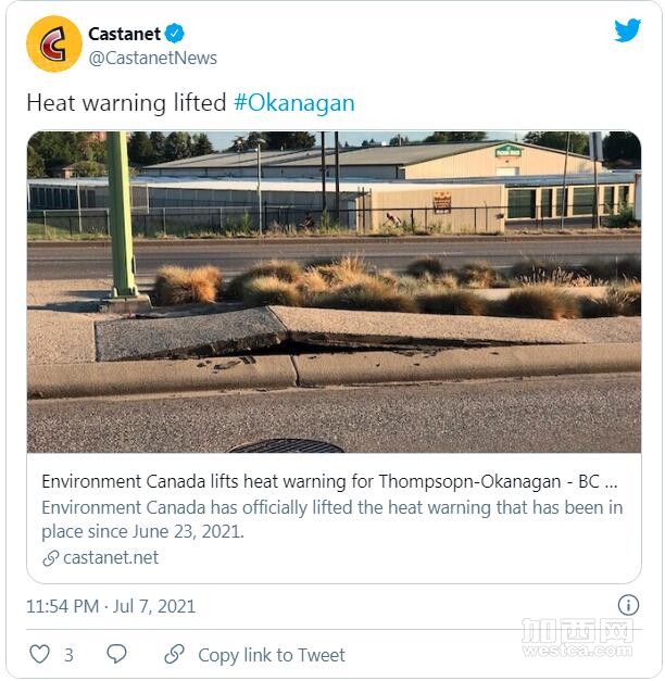 好消息,经过长达数周的高温热浪,加拿大环境部已于今天7月7号正式解除自 6 月 23 日以来一直对BC省发出的高温警告。