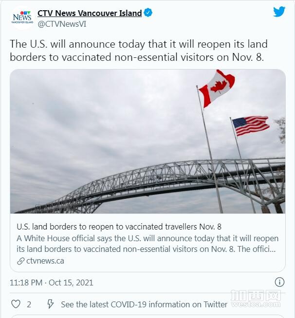 总之11月8日美加边境终于重新开放了,素里贸易局此前一直在推动政府采取行动,重新开放边境。