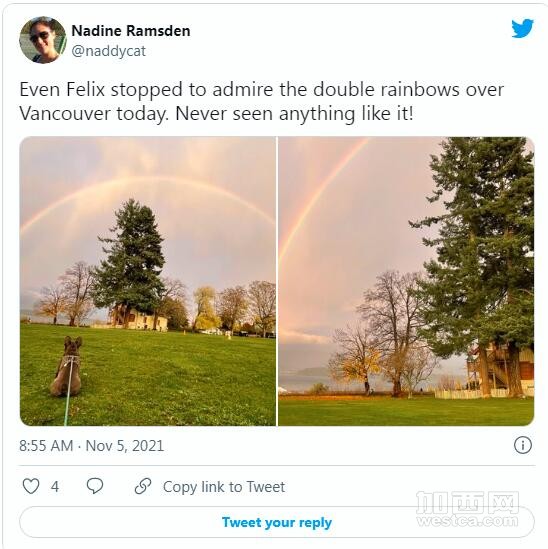 昨天傍晚大雨后,”双彩虹“持证在大温上空上岗,并且没有摸鱼,非常漂亮完美的横跨天空。