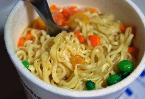 但在美国我们通常管方便面叫Ramen(听起来很像中国的兰州"拉面")或者Cup O' Noodles