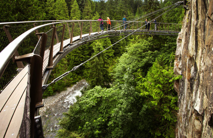 capilano以吊桥著称,现在除了最老的那条河谷上的吊桥外,还有很多树顶‘吊桥’、悬崖吊桥..