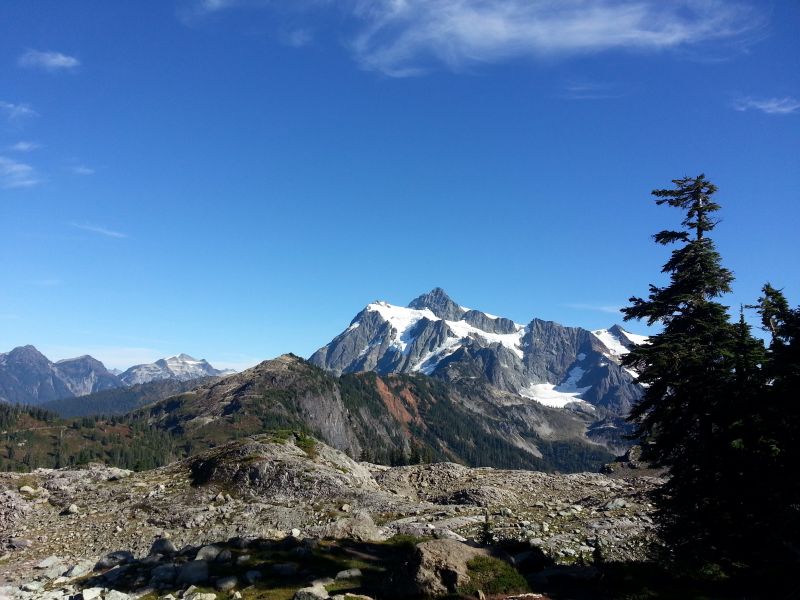 终于到了贝壳山下。著名的picture Lake。游贝壳山必去之处!
