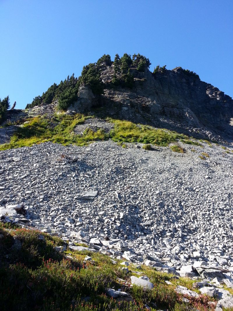 路越来越难走啊。我们要到山的尖尖上,看上去有点高不可攀。下来的人说前面的路很危险。差点要放弃。