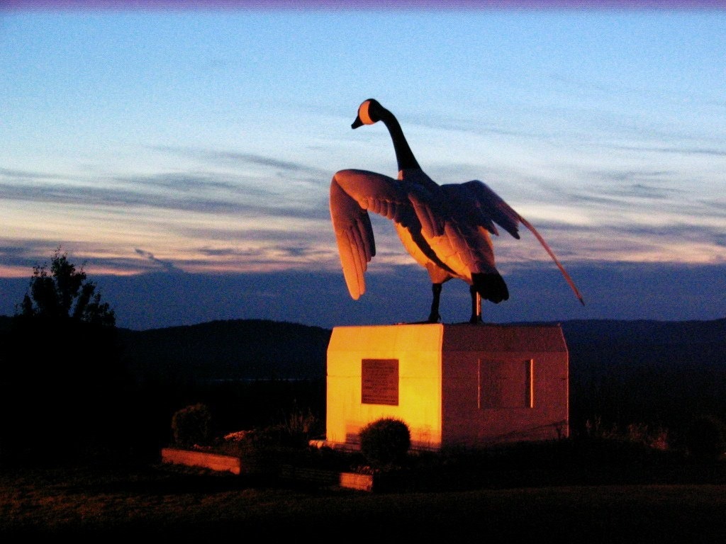 加拿大鹅是加拿大的官方标志么? 答案是NO,但是为什么很多人都认为加拿大鹅跟海狸,枫叶一样都是加拿大文化的标志呢?估计是因为它叫“加拿大”鹅吧~~ 世界上最大的加拿大鹅雕塑是在安大略的WAWA这个地方,1960年建成至今这只大鹅一直守卫在WAWA小镇的游客信息中心的门口。话说,为什么这个小镇对加拿大鹅情有独钟呢?因为这个小镇的名字“WAWA”在原住民的语言中就是“野鹅的土地”的意思。