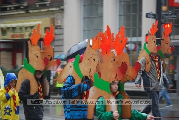 实拍:新西敏圣诞老人雨中大游行