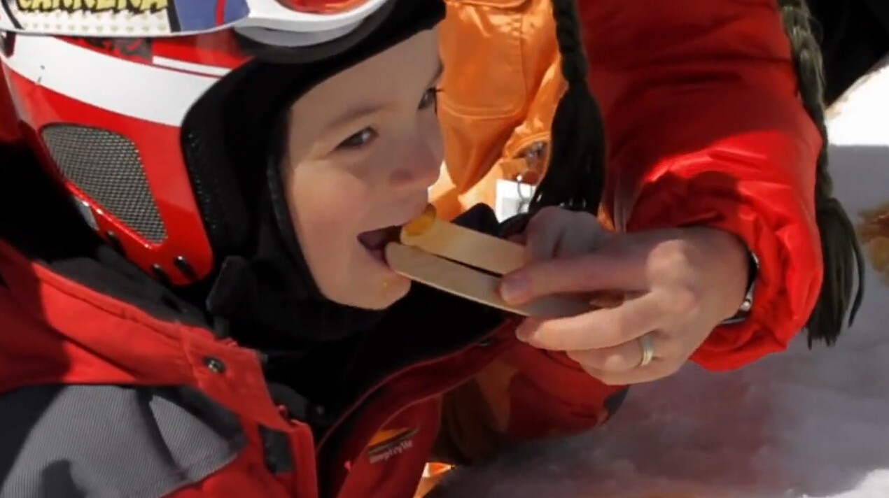 冬季来魁北克还有一招牌甜点你一定要试试:Tire sur la Neige!将热的煮过的枫叶汁做成的太妃糖后直接放在冰上然后直接放进嘴里,又甜又软又有嚼劲还带着丝丝的凉意,保证你吃到停不下来!