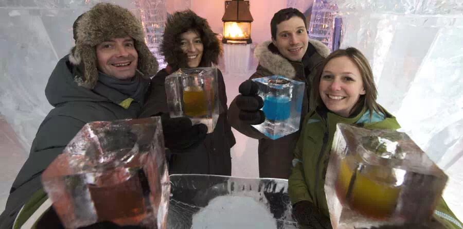 魁北克冰酒店 冬季来魁北克怎么能不体验一下北美独一份的冰酒店呢?由1万5千吨雪和50万吨冰建造而成的的冰雪酒店一年只有冬天能够体验到!今年的营业时间是2015年1月5日到3月22日,错过可是要再等一年呀~