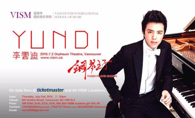 2015 年 七月二日 李云迪2015温哥华演奏会,让我们在温哥华Orpheum Theatre 重逢阔别九年的李云迪。 让我们重温那久违的,永恒的经典。
