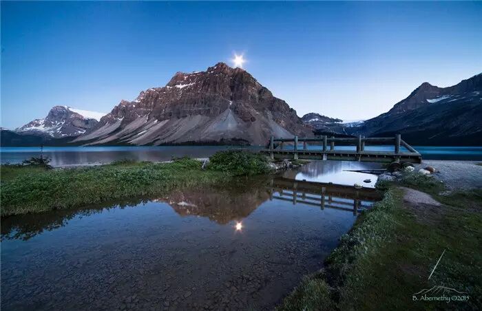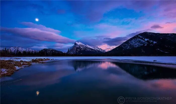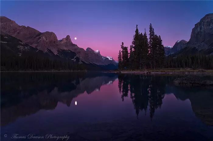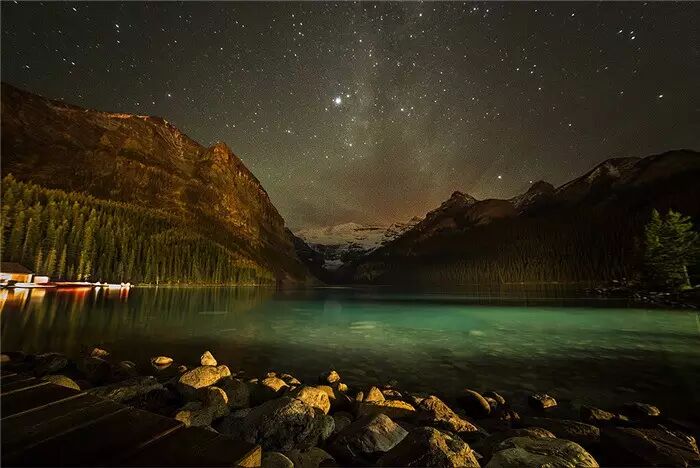 同为落基山脉的国家公园,班夫国家公园和贾斯珀国家公园相比更多了一丝烟火气,晚上在镇上或者酒店吃完晚饭,不如就步行到Vermillion Lakes的湖边,好好欣赏月光下的群山吧~再或者沿着露易丝湖漫步,月色倒映在翡翠色的湖水当中,浪漫而梦幻。