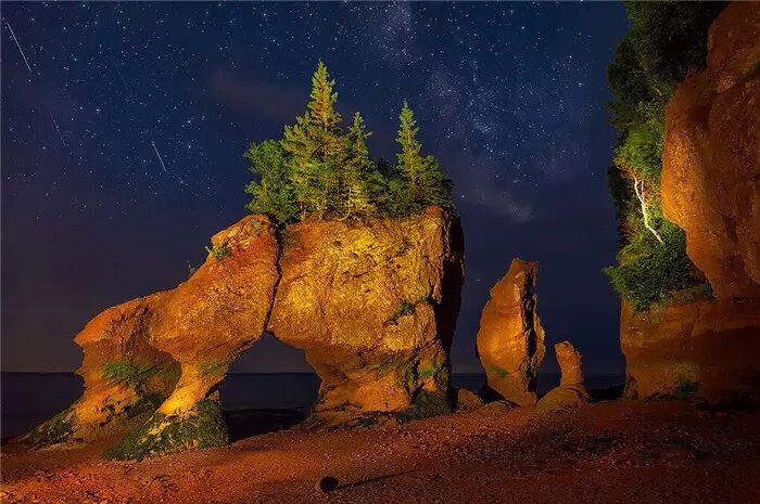 芬迪国家公园位于新不伦瑞克省(New Brunswick),这里是加拿大唯一可以看到海潮的国家公园。你在这里能够看到海潮是全世界最高的,潮水袭来时,排山倒海,潮差高达15米,壮观无比。看完这伟大的人间奇景后,建议你再多呆一会儿,看看晚上的芬迪湾,海边的群星和月亮让被海水侵蚀后形成的石林散发出别样的美感。