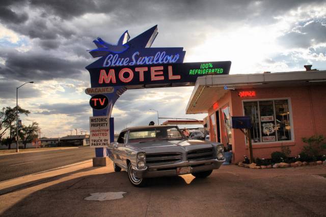 这条路横跨美国八个州、三个时区,绵延万里,从大湖边的风之城芝加哥一路向西抵达太平洋东岸的洛杉矶。 自由、神秘,这条路是“天蝎座” 密歇根湖,落基山脉,科罗拉多大峡谷,德克萨斯牛仔,沙漠中的死亡谷,汽车旅馆,摩托车队和印第安人……每一处都充满神秘的力量,如同本月的星座——天蝎座。 其实,他确实是一条“天蝎座”公路,寄托着美国人的自由精神,更是美国汽车文化的图腾。1926年11月11日,推土机的突突声开启了一段美国公路精神的传奇,这条路,就是美国最着名的“66号公路”(Route 66) 这辈子去一次66号公路,成了很多人的梦想。每一组来自66号公路的照片都能成为朋友圈里BIG满满的Show off!一次耗时几分钟的美国66号公路视觉之旅之后,你一定会找到答案。 从风之城芝加哥出发 在芝加哥的Adams ST.和Michigan Avenue的交汇处,找到标有“Begin”的66号公路起点标识,我们的66号公路之旅从这里启程。 1伊利诺伊州,Springfield “Cozy Dog”免下车餐厅已经拥有60多年的历史,热狗棒是不可多得的美食。这家店原名Crusty Cur,经老板娘提议,才改叫Cozy Dogs。 “别扭狗”和“安逸狗”,差别或许只在于“独特秘制酱料”。Every dog has its day,给生活加点料,一切都会变得不一样! 2密苏里州,圣路易斯 高192米的圣路易斯拱门,886吨不锈钢铸就的抛物线。是1961年为纪念开拓时期的人们跨过密西西里河而修建。66号公路从拱门旁边经过,像一支探索西部的利箭,晚霞满天,有月亮陪伴。 3密苏里州,Carthage 夕阳西下,汽车电影院开场了!忘掉时间,跟着凯迪拉克们享受最惬意的夜晚。 4堪萨斯州,Baxter Springs 这是一座烙印着66号公路图标的“彩虹桥”。它曾裂缝满身、险些被拆除,但最终被保留下来。路人说,如果你在桥上碰到野餐和婚礼,一定要欣然加入,共享美好的时光。 5俄克拉荷马州,卡图萨 约40年前,退休动物园管理员Hugh Davis,送给妻子一份特别的结婚周年礼物。一条身长26米的蓝鲸“玩具”出现在自家池塘边,也为当地增添了一处玩赏景观。1988年,老夫妻无力维持,乐园一度荒废;2000年,志愿者慈善筹款,齐心修复。蓝鲸被披上了全新油漆,大大的笑容感染了每个路过的人,路过时记得自拍。 6德克萨斯州,阿马里诺 这家德州大佬牛排馆远近闻名,食客“只要”在一小时之内吃完72盎司的牛排套餐,这顿就能免单!老板决不食言。 在这里,艺术家把10辆来自不同年代的凯迪拉克古董车,以吉萨金字塔斜边的角度插入土中。从此,Cadillac Ranch成为所有人可以尽情挥洒想象力的地方,不擅长绘画又有何妨,自由精神在此! 7德克萨斯州,阿德里安 到了这里,恭喜,我们走完了一半的路。 Midpoint Cafe正巧位于66号公路的地理中点,66号公路文化浓缩于一间小屋中,停留片刻,和来来往往的66号公路客聊聊,每一个都有故事。 8新墨西哥州,图克姆卡里 蓝色霓虹上的燕子寓意“回归”。候鸟每年往返,旅人们每年也会回到这里,并重新启程。 9新墨西哥州,圣塔菲 城市中的建筑大多都体现着西班牙乡村田园风格。所以,漫步在圣塔菲街头会有一种置身于西班牙小城镇的错觉。 10新墨西哥州,阿尔伯克基 魔法房车营地展现了66号公路上的一种慢生活,随时驻留,随时行走。 汽车旧时光。这些未被回炉的废旧汽车堆放在这里,任由时光留下印记,不由让人感叹光阴易逝。 11亚利桑那州,温斯洛 站在这个街角,老鹰乐队唱道:"Well, I was standing on a corner in Winslow, Arizona, such a fine sight to see.It's a girl, my Lord."这便是经典歌曲《Take it easy》的歌词。 12亚利桑那州,威廉姆斯 古老的火车站是通往大峡谷的门户。无论你是否有儿提时代的铁道情结,看到这样的景象你不会不为之而动容。 13亚利桑那州,塞利格曼 这里是66号公路上的“地球村”。每一家小店都是66号公路文化的缩影。因为有梦想,所以才有如此绚烂夺目的色彩。 狭长的公路在广袤的荒原中穿行,随着地势而起伏绵延。可以想见当年修筑这条公路的开拓者们不仅要面对严苛的自然环境,还要有足够强大的内心来抵御那种无尽的寂寞感。 14加利福尼亚州,圣贝纳迪诺 印第安尖顶帐篷式的汽车旅馆,曾经是66号公路上最经济便捷的落脚点,在动画片《汽车总动员》里便有这个场景。 15加利福尼亚州,圣莫妮卡 看到这块标牌,意味着你的66号公路之旅已经画上圆满的句号。 66号公路上的那些传奇 66号公路的名气多响,再来看看那些这条路上走出来的名人和电影作品: 海明威在这条公路边写完《老人与海》; 电影里的阿甘就是在这条公路上奔跑出传奇; 杰克·开鲁亚克《在路上》说的是这里; 老鹰乐队的歌中唱着这里; 这条路还出现在《德州巴黎》、《蓝莓之夜》、 《巴格达咖啡馆》和《汽车总动员》 这绝对是一条有FEEL的公路!
