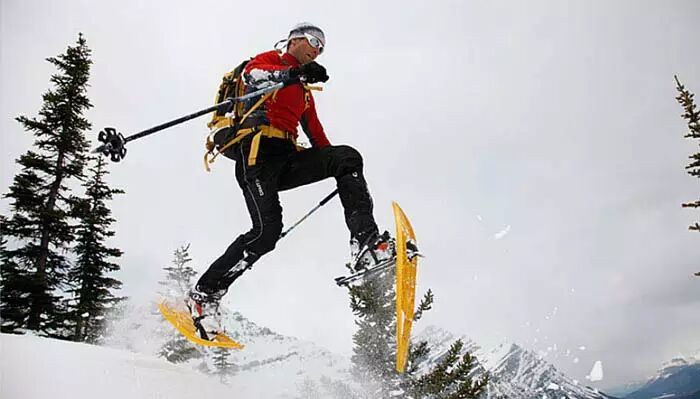 有时你会遇到这样有趣的好机会,一脚踩在艾伯塔省,一脚踏在不列颠哥伦比亚省,别忘了给这一独特场景拍照留念。走在云端到底是什么感觉?你只要试一试雪鞋漫步,就会知道。
