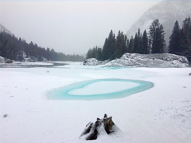来到露易丝湖。看到冰天雪地的湖面,我大吃一惊!那翡翠色原来不是四季都有的。