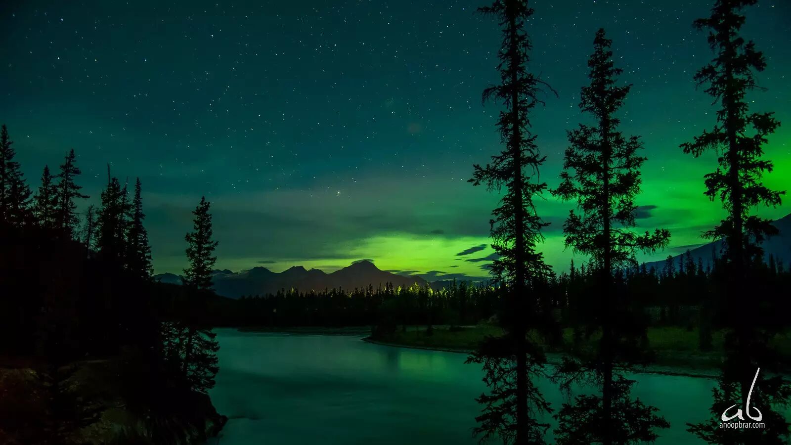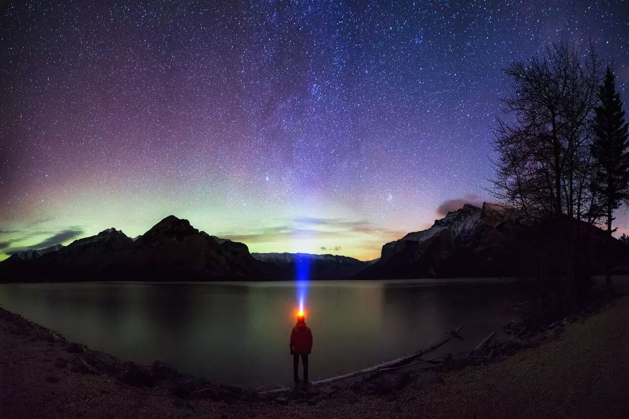 但如果你这个时候正好在班夫体验滑雪,那也不要浪费了夜晚的美好时光,因为在班夫国家公园和贾斯珀国家公园有时也会看到极光,而且在这两个地方观赏极光有个好处就是,可以拍到极光映射下被皑皑白雪覆盖了的