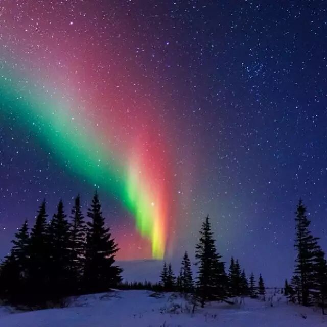 每年的10月、11月,位于马尼托巴的丘吉尔(Churchill)不仅是北极熊的世界,还是这里的最加极光观赏季。这座加拿大最靠北的小镇,由于地处北极圈,也有人将这里称为是极光的天堂,据说在粒子较活跃的年份,一年中有长达300天可以看到极光呢!