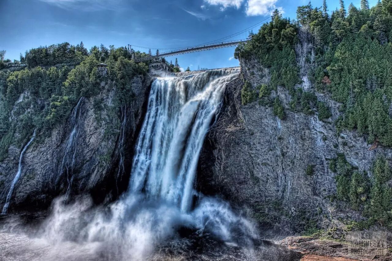 魁北克省的蒙莫朗西瀑布公园(Parc de la Chute-Montmorency)距离魁北克城只有几分钟的车程,它的位置比较特殊,正好处于河流与悬崖之间,也拥有省内最特别的景色。蒙莫朗西瀑布(Montmorency Falls)甚至比举世闻名的尼亚加拉大瀑布还高30米,总高83米。欣赏这里的美景,你可以选择传统的山间小径,当然,你也可以选择更加刺激的两种方式。