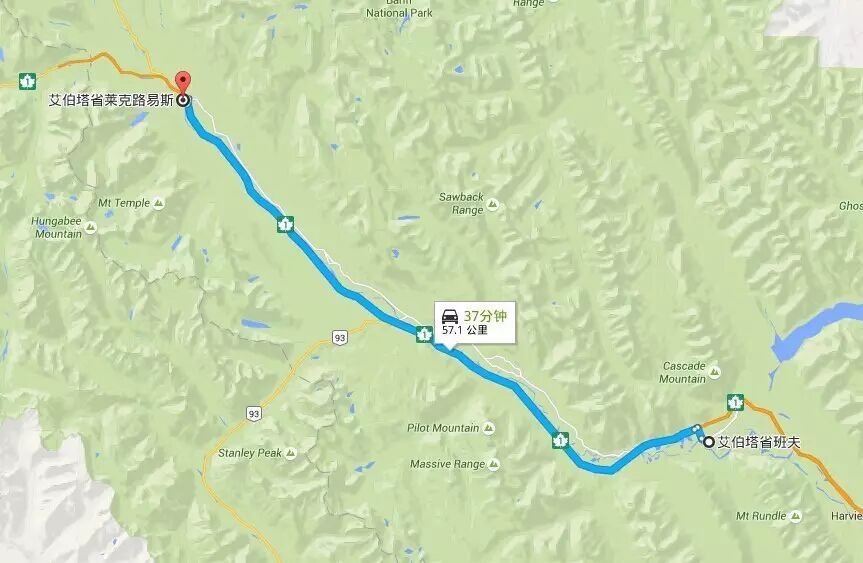 如果自驾的话,有两条路可以选,如果想要快一些,可以走TransCanada Highway,大约45分钟车程;如果你想在路上和小动物亲密接触,试着走走Bow Valley Parkway吧,风景非常迷人,而且能经常看到小动物的身影。具体大家可以参考上面的截图。不过还是建议大家带一个GPS,或者到游客中心索取地图,这样更保险一些。