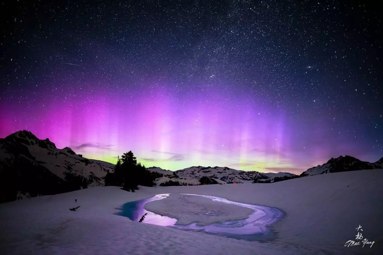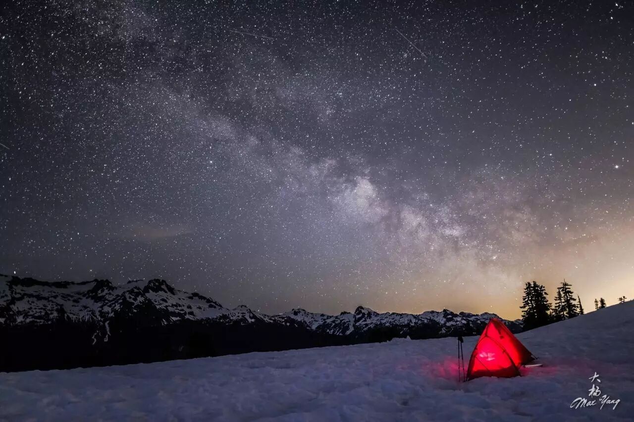后来混摄影圈认识了同样久仰的stevez,他说那正是Danny Xu老大哥,户外高人、摄影大师,那天在Baker山是stevez第一次跟Danny拍极光。只是他长期闲云野鹤云游四方,我也没有深入这两个圈子,一直没有冒昧求见,直到大家都知道我追光成迷。网上是认识了,谋面却是半年以后。如果不是今年年初那天他想看看我们新添的星光镜头,见到他真人还不知道要到什么时候。