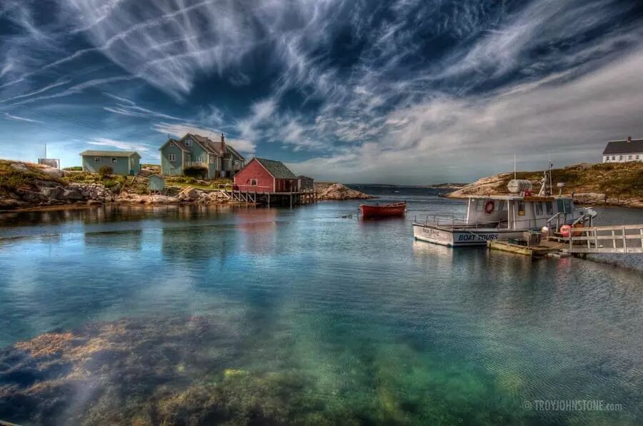 佩姬湾灯塔(Peggy’s Point Lighthouse)是这里的标志性建筑,距离新斯科舍省省会哈利法克斯(Halifax),不仅仅算得上是本省最常被各大博主po到instagram上的地点,更算得上是整个北美大陆最上镜的灯塔。当白浪翻滚,拍打着岸边的巨大岩石,显得荒芜而野性,远处星星点点的渔民村舍,更突显出灯塔所在地一种未经雕琢的美。